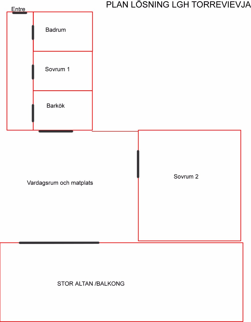 2 sovrum,kök och badrum samt vardagsrum . Stor balkong/terass. Altan utan insyn.